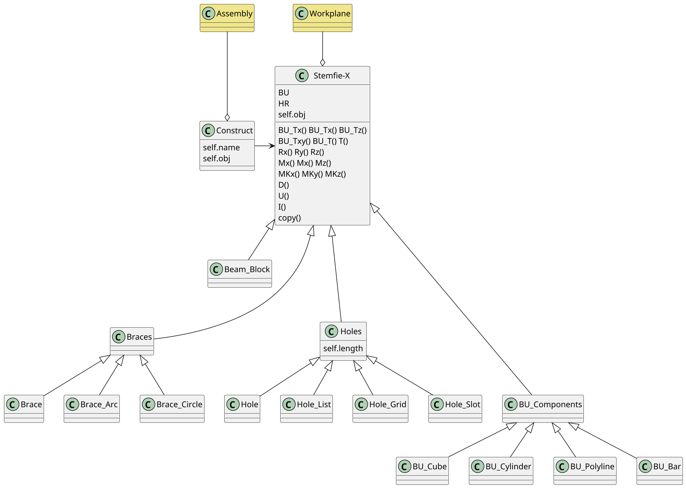 Knižnicu Stemfie-X tvorí sada tried implementovaná pomocou knižnice CadQuery. Diely stavebnice je možné vytvárať v jednom kroku volaním funkcií s parametrami dielov, nové diely je možné tvoriť z iných dielov pomocou jednoduchých logických operácií (prienik, rozdiel, zjednotenie). Pre generovanie štandardných ako aj odvodených dielov stavebnice postačujú triedy knižnice Stemfie-X, pokročílí uživatelia ale môžu využiť všetky možnosti knižnice CadQuery a jazyka Python.