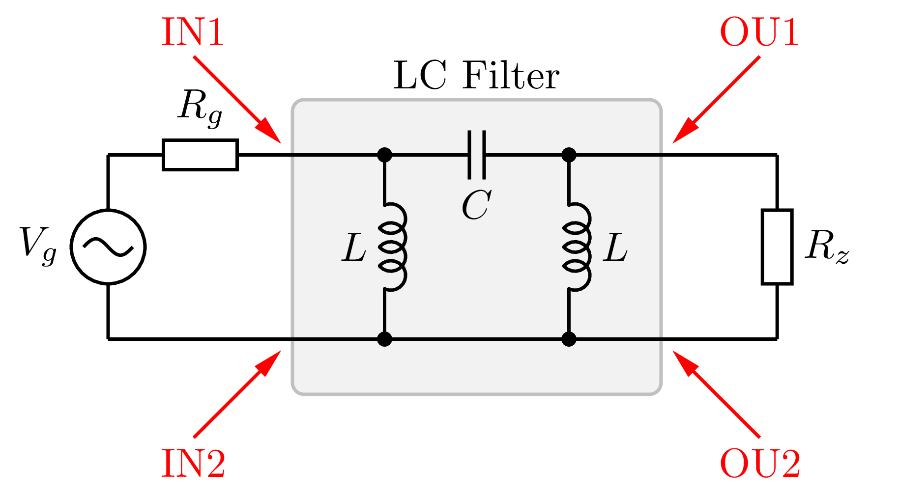 Zvýraznenie prvku v zapojení dosiahneme zmenou šírky čiary, táto je určená makrom linethick_(n). Volanie makra bez argumentu linethick_() nastaví pôvodnú hrúbku. Zmena hrúbky čiary neovplyvňuje zobrazenie textov, Obr. 54.