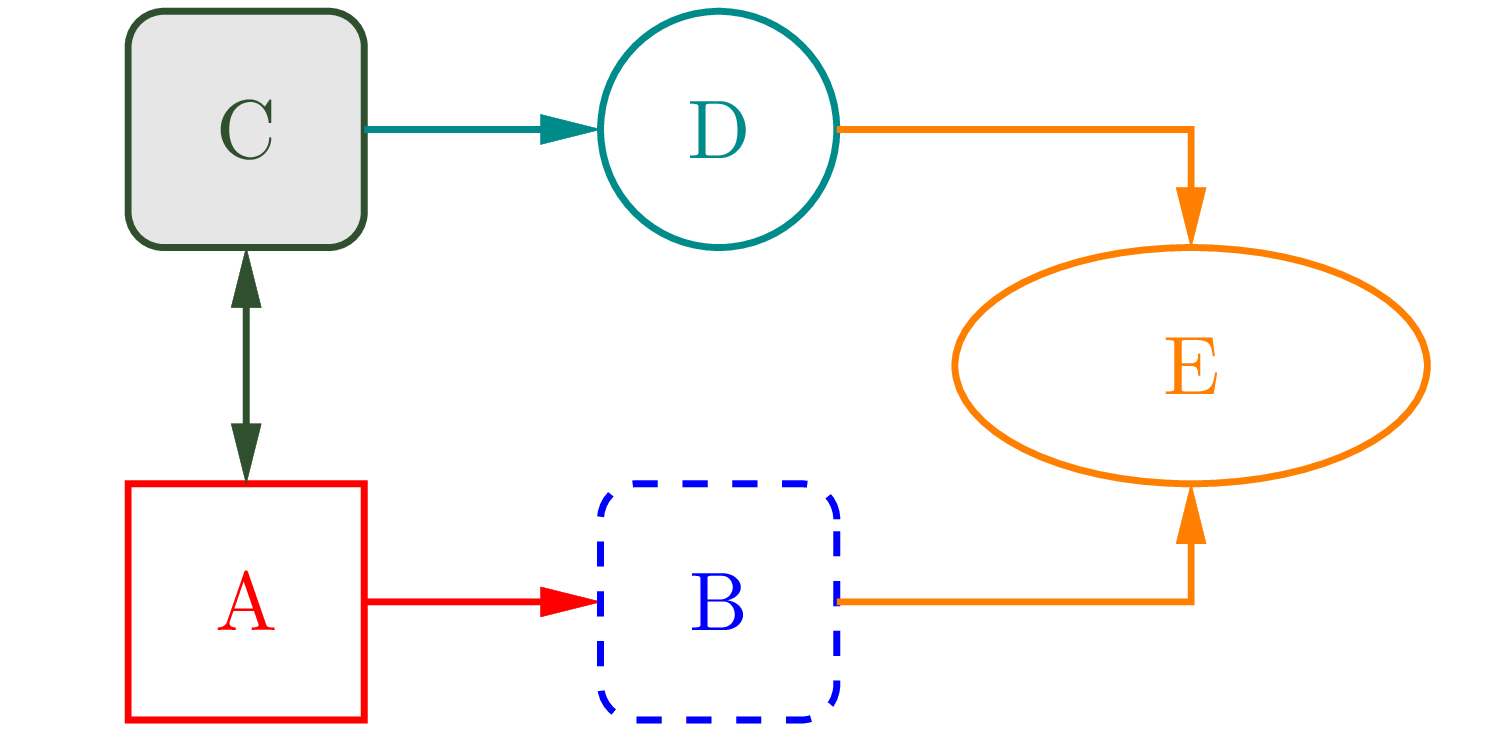line <-> from (2,1.5) right_ 2; {"C" ljust}; # obojsmerna sipka