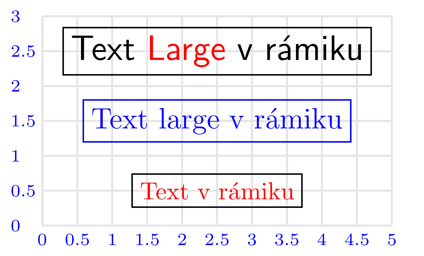 color_blue; "\fbox{\large Text large v rámiku}" at (0,1);